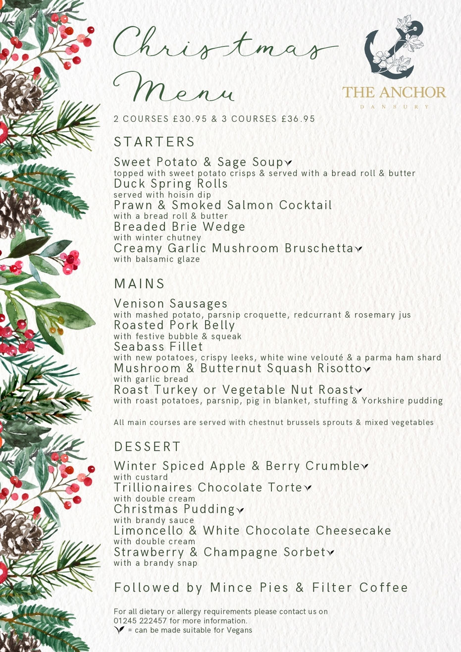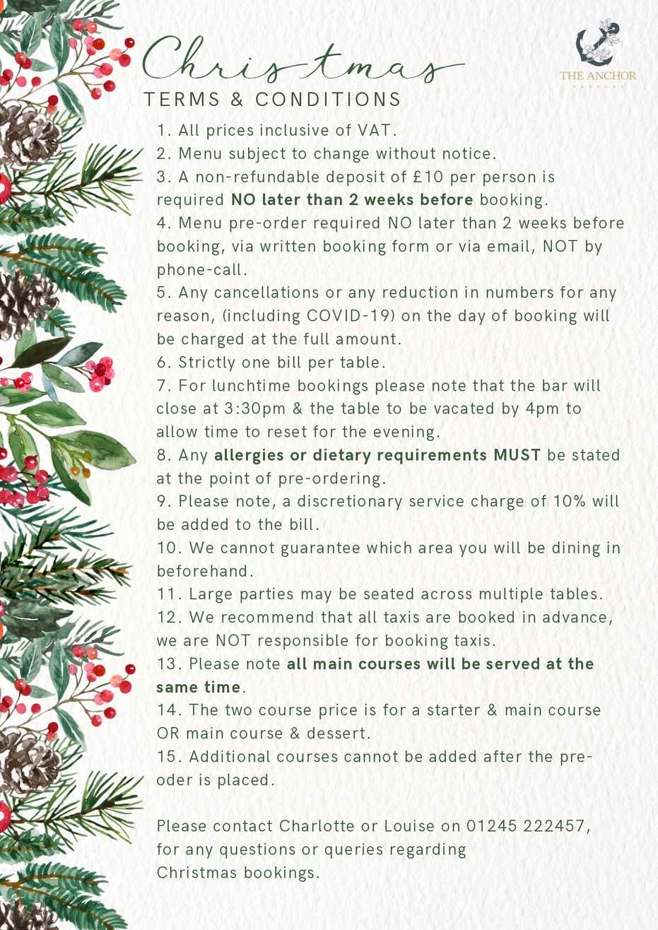 For any questions or queries regarding Christmas bookings, please ask for Charlotte or Louise.